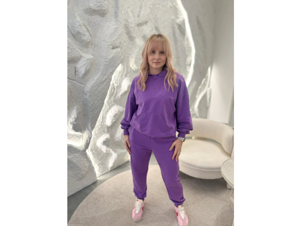 Dámská fialová tepláková souprava s mikinou s kapucí - certifikát OEKO-TEX