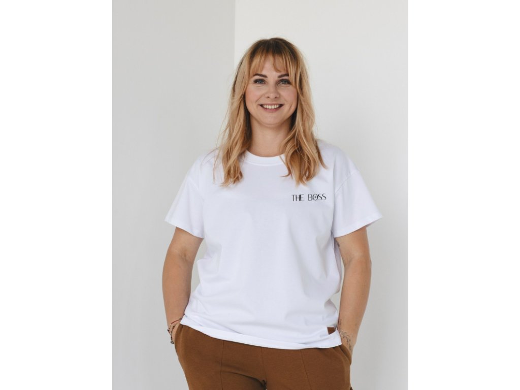 Dámské bílé tričko THE BOSS – nadměrné, pohodlné a ekologické