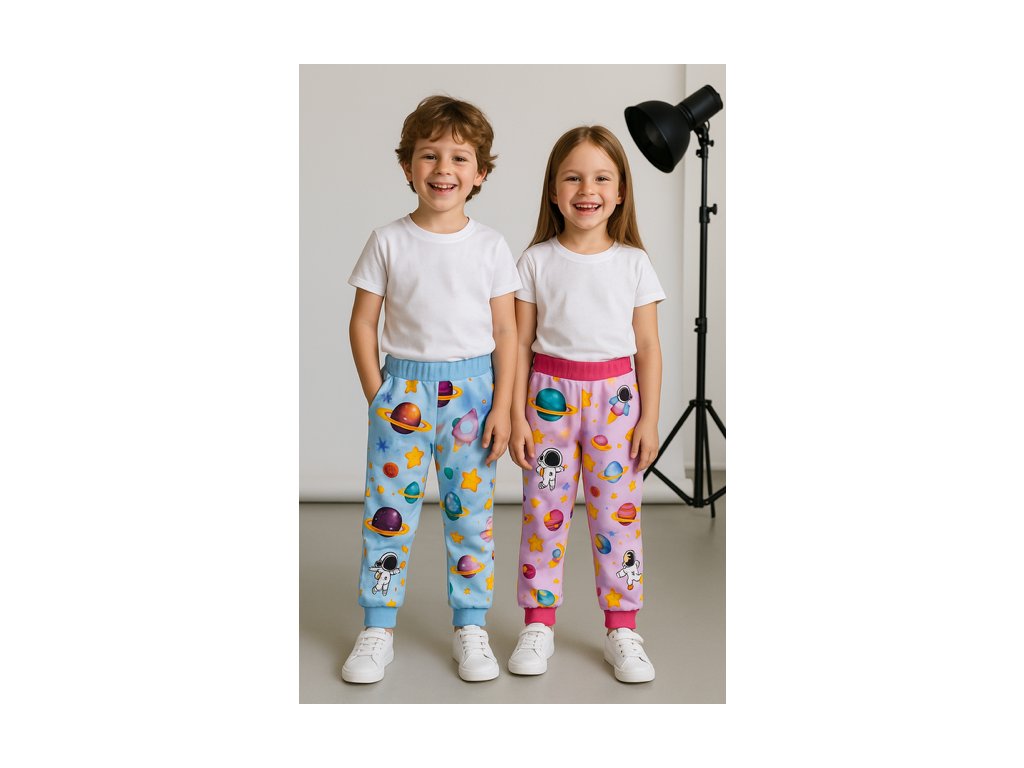 Objevte pohodlí a hravý design s těmito měkoučkými dětskými tepláky s originálním vesmírným motivem.