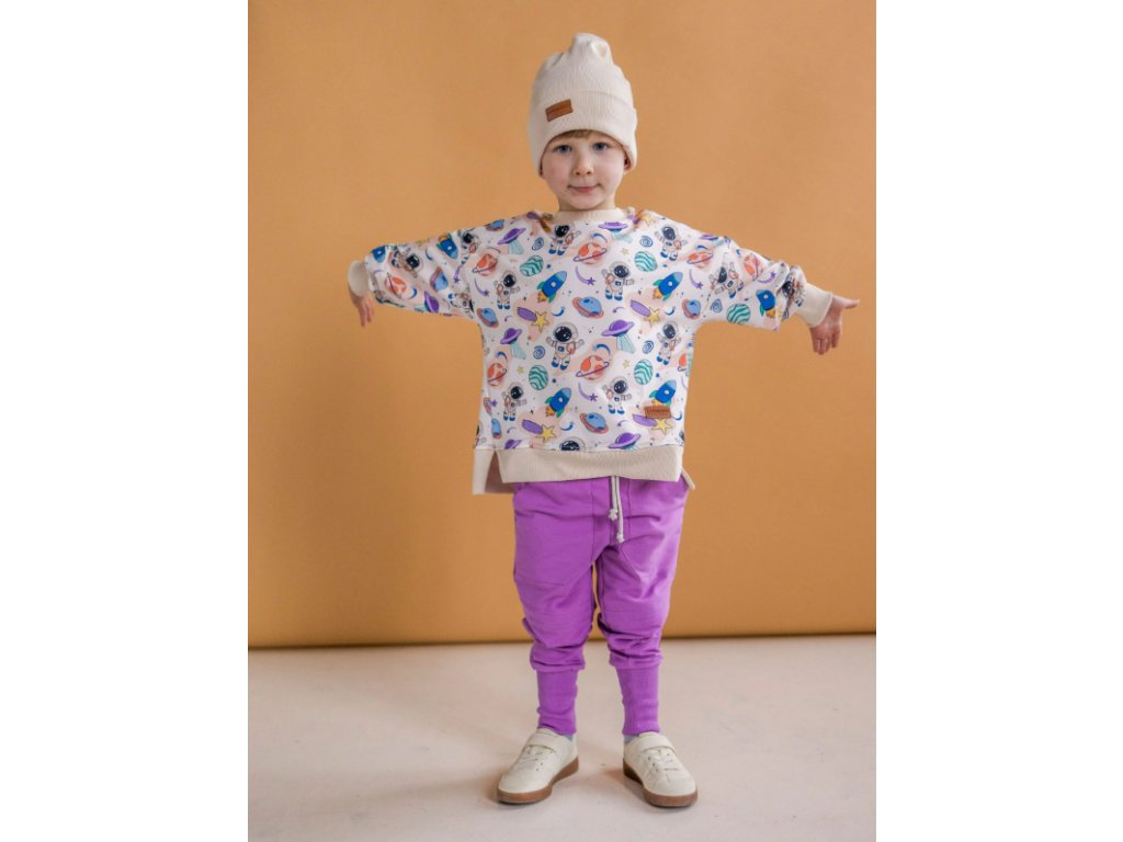 Dětský komplet – mikina s vesmírným potiskem & fialové tepláky