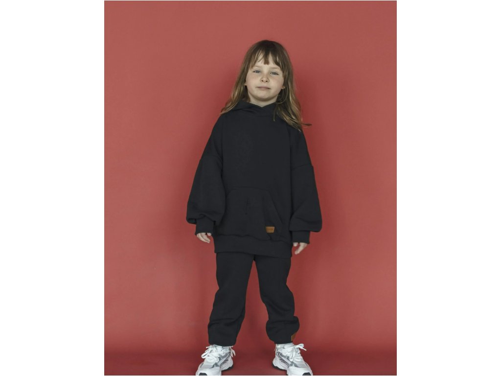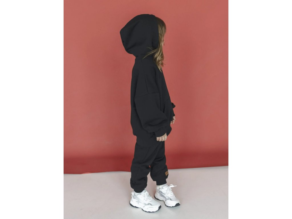 Stylová a pohodlná černá tepláková souprava FAMILY pro dívky je perfektní volbou pro každou malou módní nadšenkyni! Je vyrobena z vysoce kvalitní prémiové teplákové látky , která poskytuje výjimečné pohodlí a zároveň vypadá neuvěřitelně módně a moderně. Tato dívčí tepláková souprava obsahuje mikinu s kapucí a praktickou klokaní kapsou a kalhoty s kapsami, elastickými manžetami a ozdobným prošíváním uprostřed nohavic.