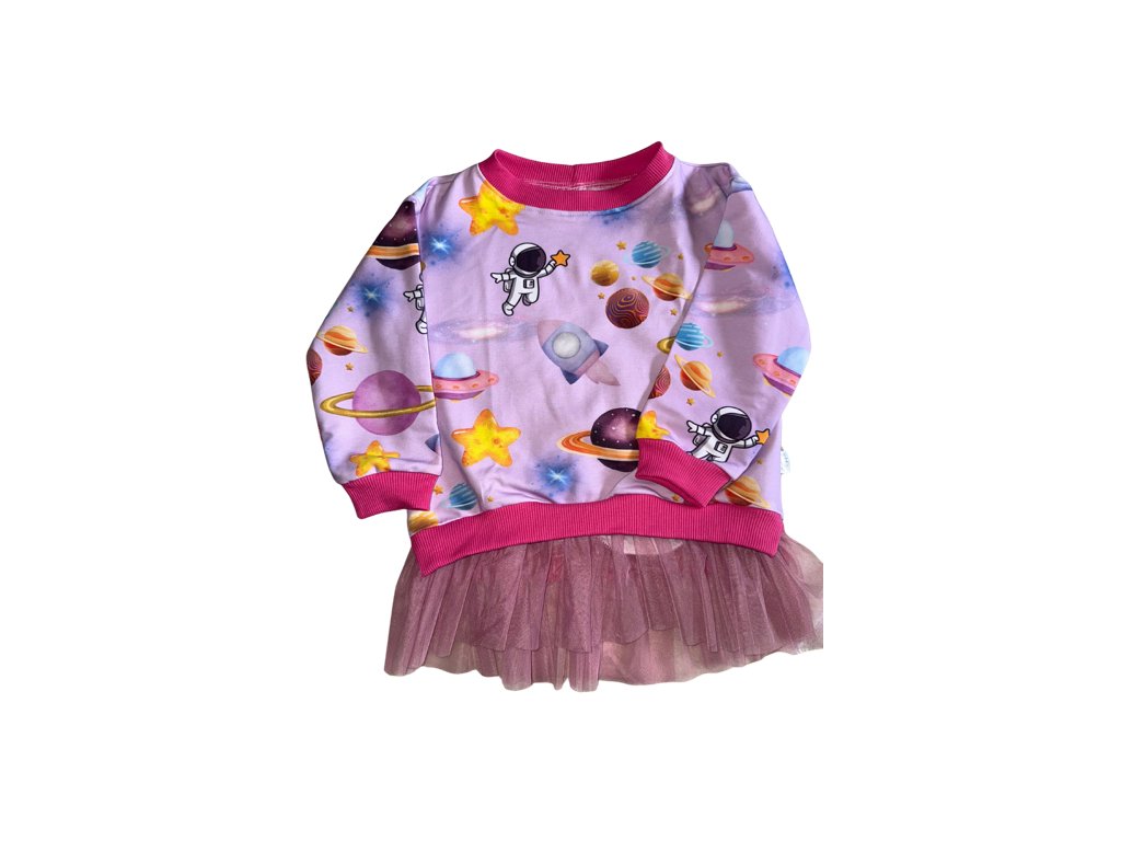 A teď to nejlepší – zespodu vykukuje jemný tylový volánek, který dodává celému outfitu kouzelný nádech. Prostě vesmírná paráda s dívčím šmrncem!