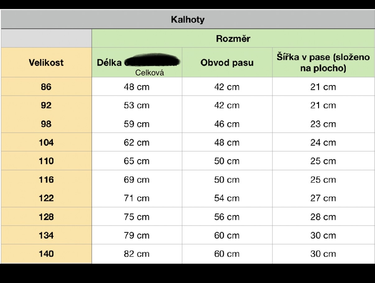 Velikostní tabulky