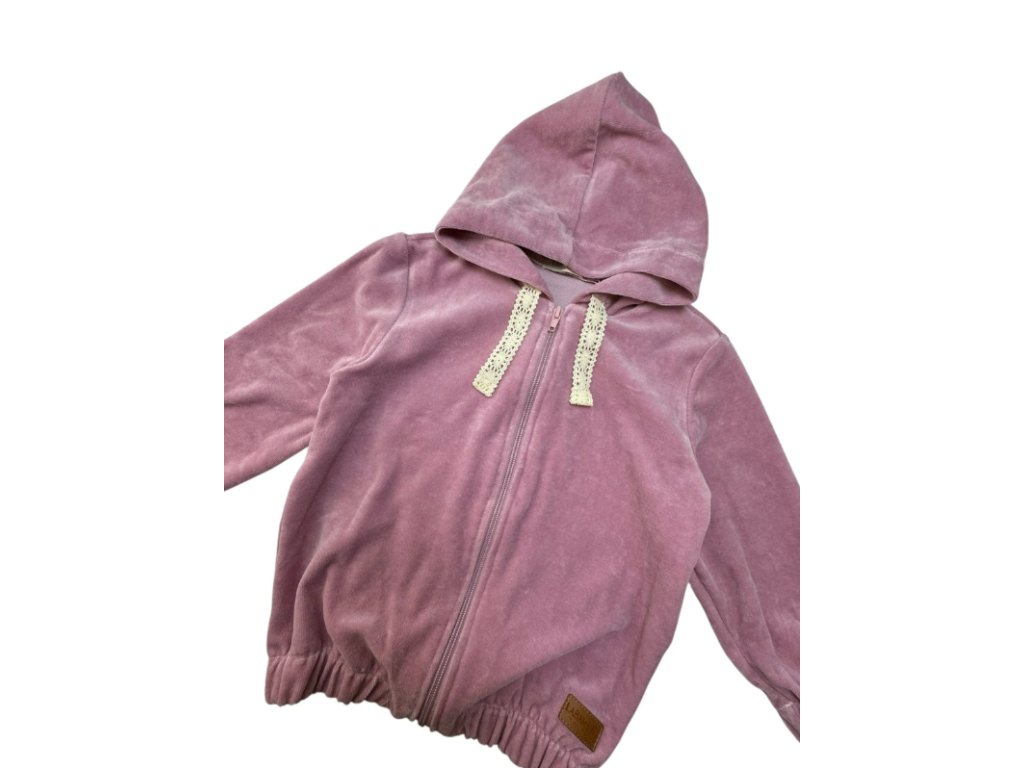 Velurová mikina na zip s růžovou krajkou a kapucí – pohodlí a styl v jednom!